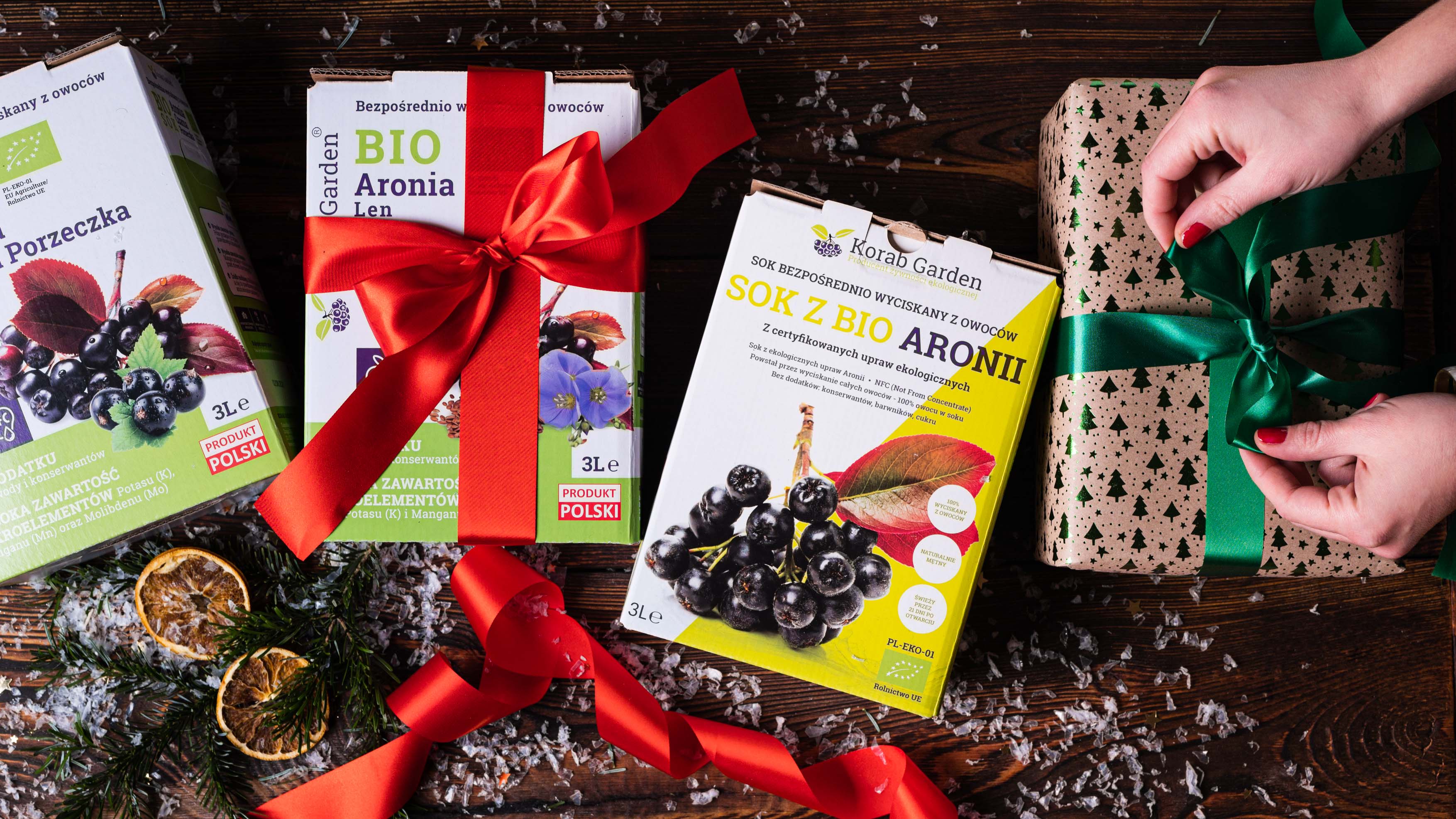 - Soki i liofilizowane owoce jagody kamczackiej w pięknie zapakowanych zestawach świątecznych - Plantin